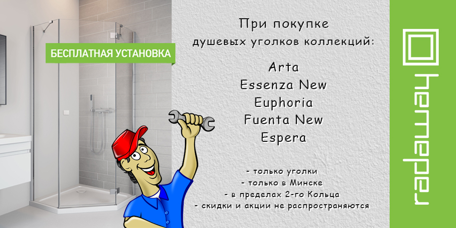 Бесплатная установка душевых углов Radaway коллекций Arta, Essenza New, Euphoria, Fuenta New, Espera