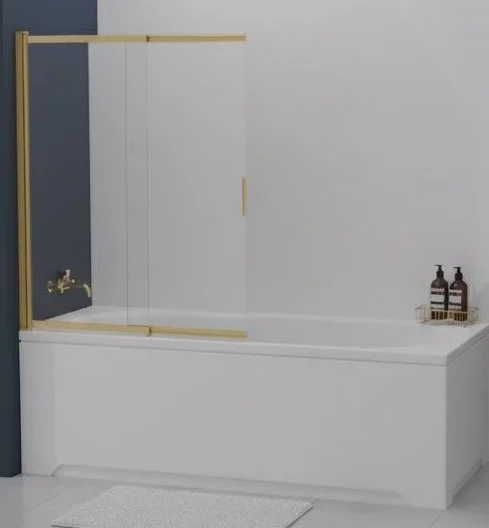 шторка для ванны ceramalux cl601g-100/140 matt gold стекло прозрачное / профиль матовое золото