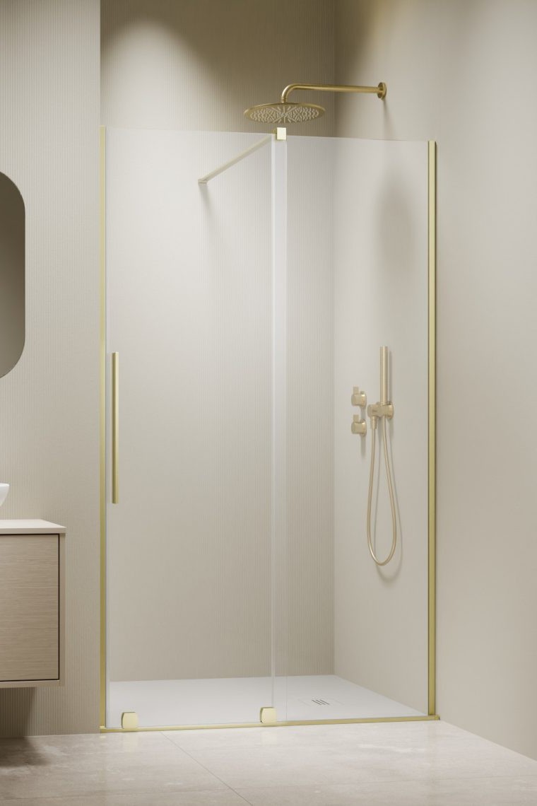 душевая дверь radaway furo brushed light gold dwj 120x200 левая, стекла прозрачные, профиль браширванное светлое золото
