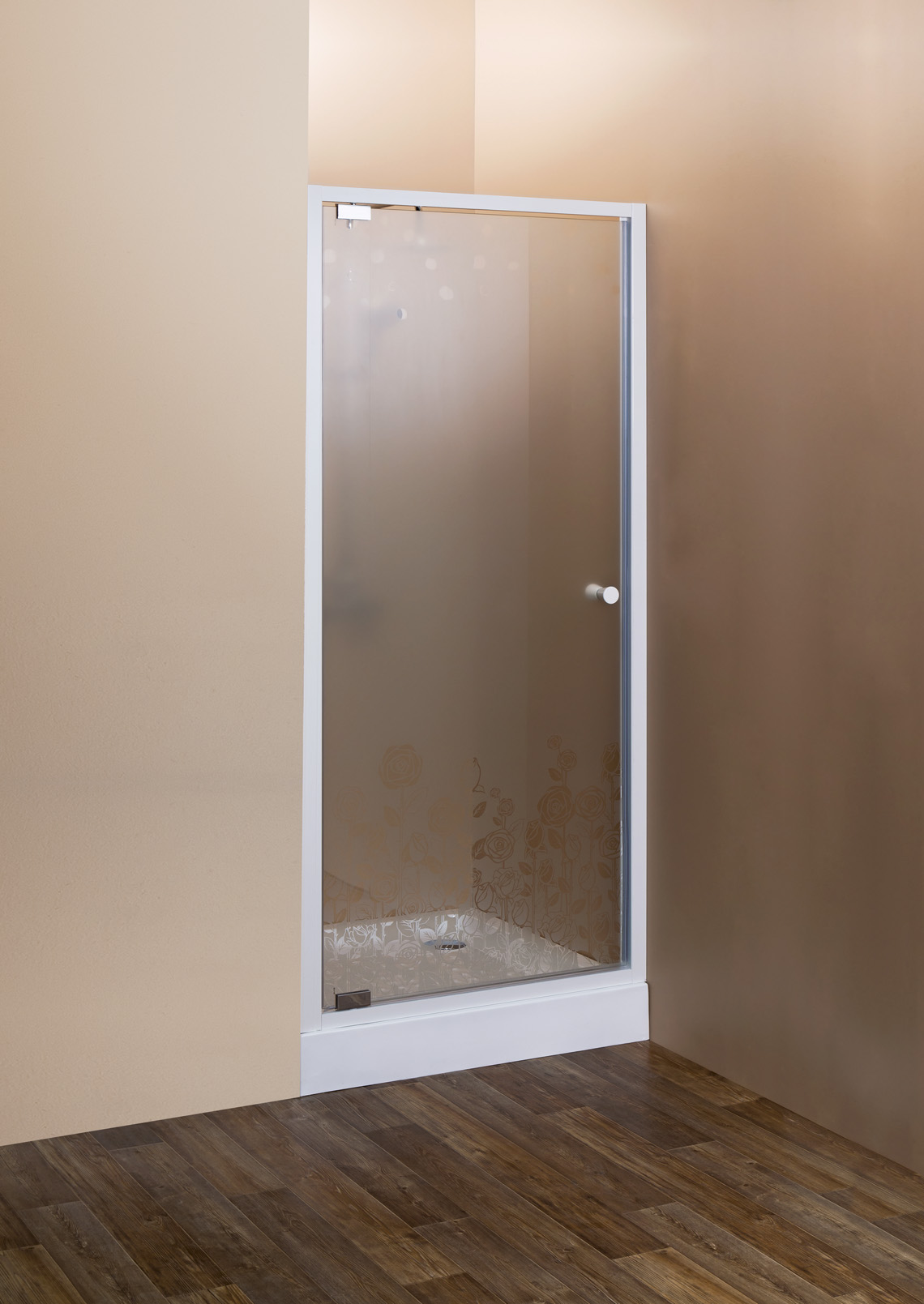 душевая дверь cezares rosa-ba-1-80-ro-bi 80x195 стекло матовое с прозрачным рисунком, профиль белый