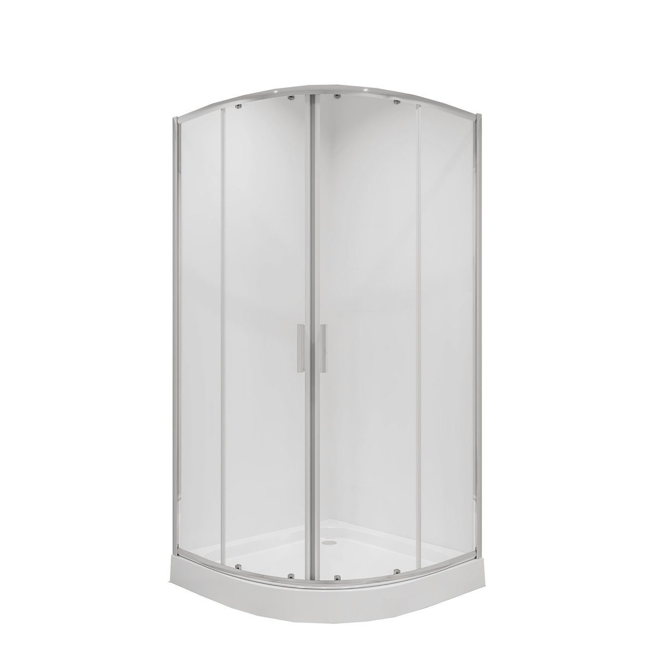 душевой уголок ambassador queen 11011102 полукруглый 100x100x200 (прозрачное стекло / профиль хром)Душевые уголки 100х100 – изделия расширенного размера. Отличие их от душевых кабин – отсутствие крыши и задних стенок. Китайские и европейские модели схожи по параметрам (качественные материалы, функциональность и т.д.), различается лишь гарантийный срок.