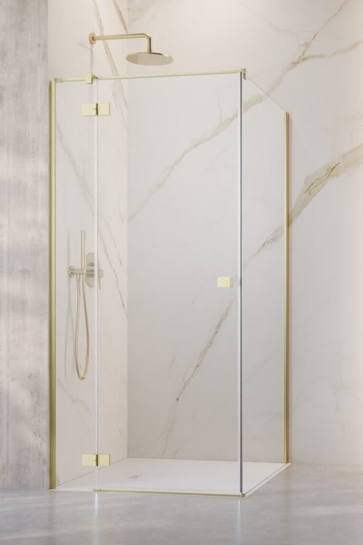 душевой уголок radaway essenza 6 brushed light gold kdj 100x100 левый, стекла прозрачные, профиль брашированное светлое золото
