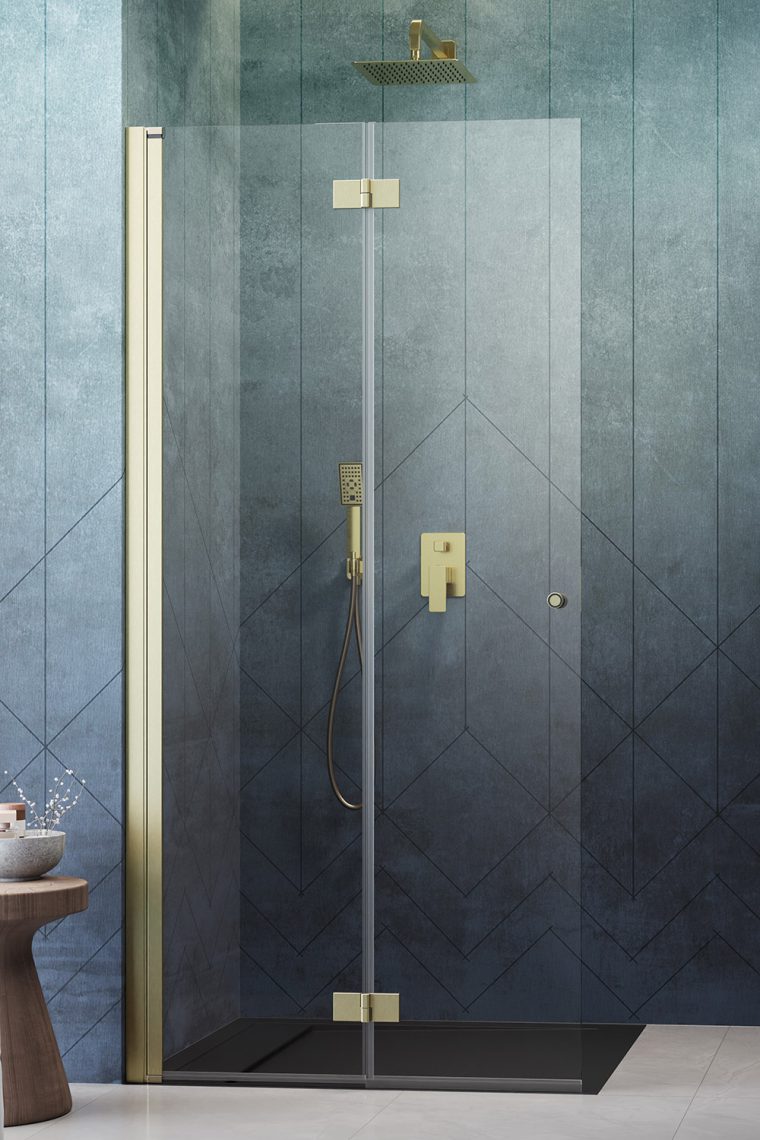 душевой уголок radaway nes brushed gold kdj i 80x90 левый, стекла прозрачные, профиль брашированное золото