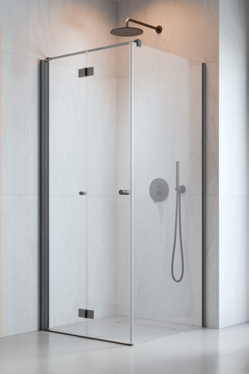 душевой уголок radaway nes brushed gunmetal kdj b 90x90 левый, стекла прозрачные, профиль брашированная оружейная сталь