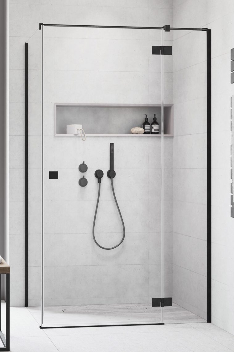 душевой уголок radaway nes brushed gold kdj-b 90x70 левый, стекла прозрачные, профиль брашированное золото