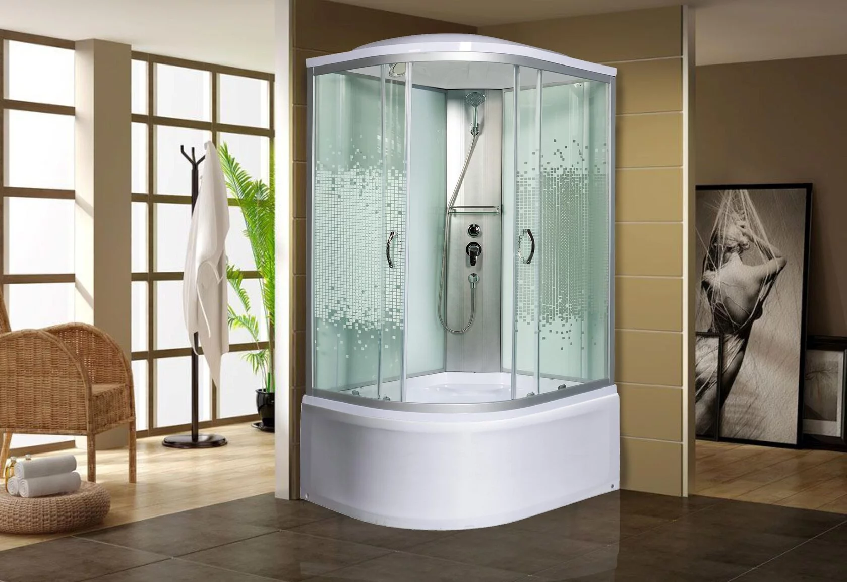 душевая кабина мономах б/к 100/80/24 мз r 100x80 стекла прозрачные с рисунком, профиль хромКод: 155678