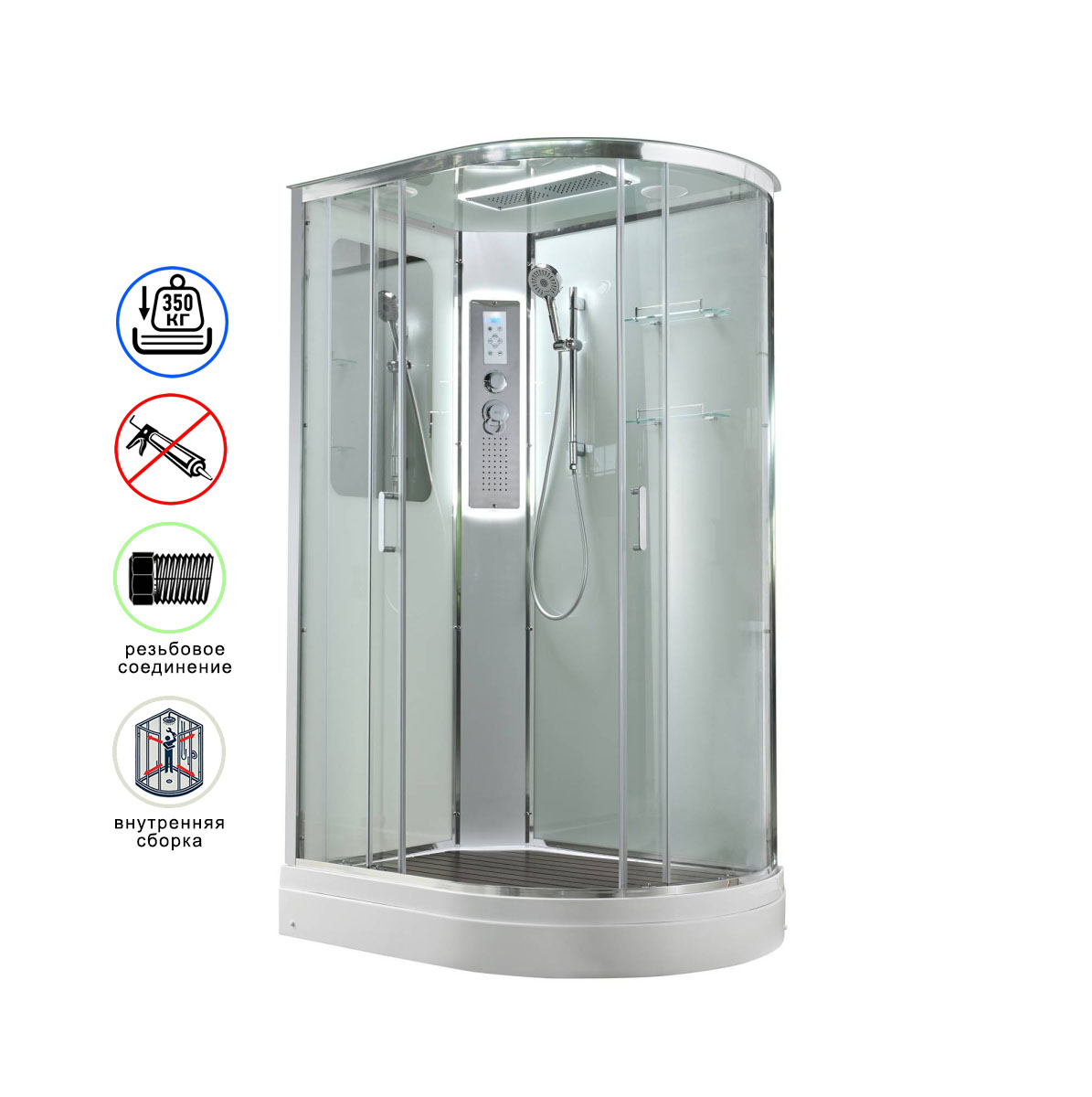 Стильная душевая кабина AvaCan сочетает в себе высокую функциональность, практичность и надежность. При изготовлении применяется безопасное закаленное стекло, надежно фиксируемое алюминиевым профилем.Профиль сделан из алюминия повышенной прочности. Сборка без силикона (увеличивает срок службы, защищает от протечек), внутренняя сборка (облегчает установку и ревизию; позволяет установить в ограниченном пространстве и обойтись без демонтажа других сантехнических приборов), смеситель резьбовой (без хомутов). Двойные металлические ролики дверей (распределение нагрузки на два ролика, увеличивают срок службы). Душевая штанга(позволяет регулировать по высоте ручную лейку), ручная арома-лейка с витамином С (картридж в комплекте,есть возможность замены или удаления картриджа), полочки(из стекла, с ограничителем), сифон с гидрозатвором, сенсорный пульт управления с функциями: блютуз, LED подсветка, радио, вытяжка, гидромассаж спины, тропический (верхний) душ.