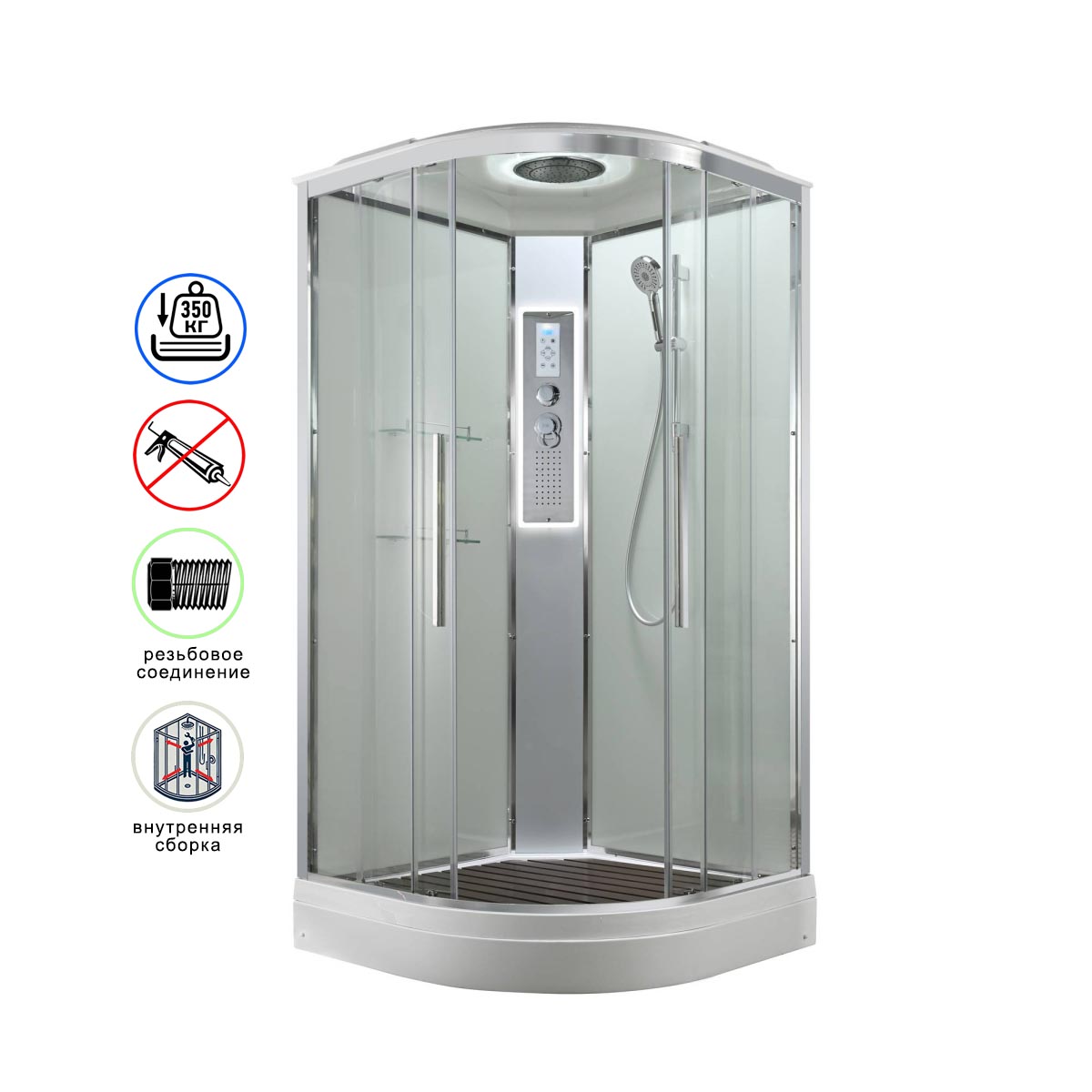 Душевая кабина Avacan EM2090LEDT AVA 90x90 LED, стекла прозрачные, профиль хром