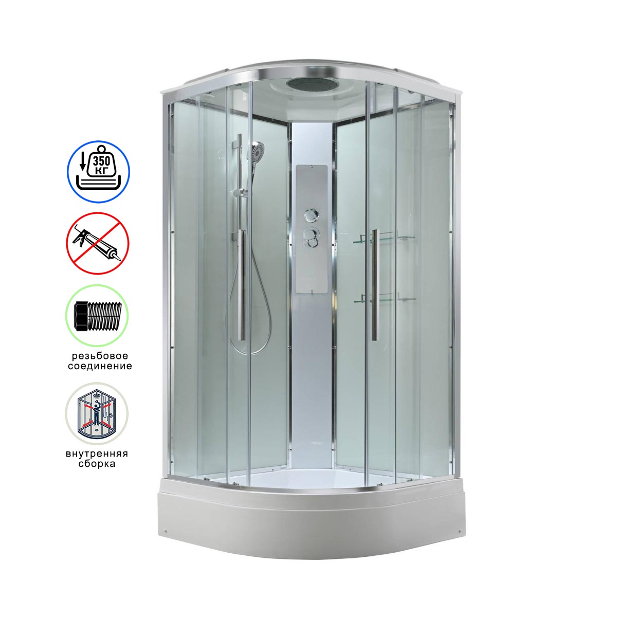 Стильная душевая кабина AvaCan сочетает в себе высокую функциональность, практичность и надежность. При изготовлении применяется безопасное закаленное стекло, надежно фиксируемое алюминиевым профилем. Профиль сделан из алюминия повышенной прочности. Сборка без силикона (увеличивает срок службы, защищает от протечек), внутренняя сборка (облегчает установку и ревизию; позволяет установить в ограниченном пространстве и обойтись без демонтажа других сантехнических приборов), смеситель резьбовой (без хомутов). Съемный экран поддона (позволяет осуществлять подключение и ревизию сифона).Двойные металлические ролики дверей (распределение нагрузки на два ролика, увеличивают срок службы). Душевая штанга(позволяет регулировать по высоте ручную лейку), ручная арома-лейка с витамином С (картридж в комплекте,есть возможность замены или удаления картриджа), полочки(из стекла, с ограничителем), сифон с гидрозатвором.
