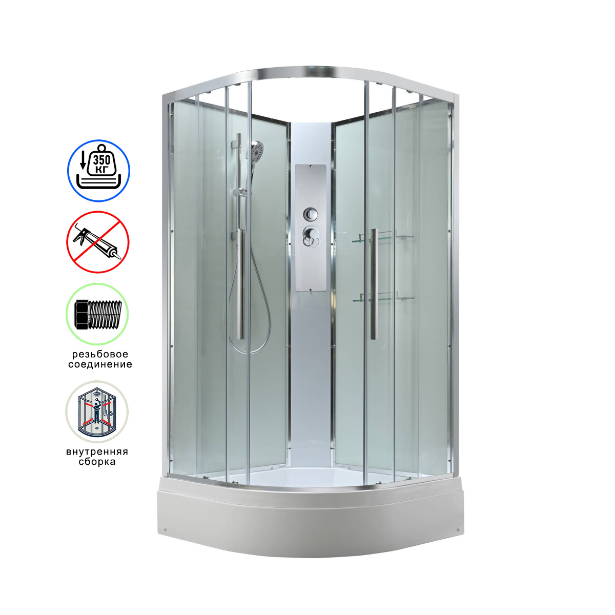 Стильная душевая кабина AvaCan сочетает в себе высокую функциональность, практичность и надежность. При изготовлении применяется безопасное закаленное стекло, надежно фиксируемое алюминиевым профилем. Профиль сделан из алюминия повышенной прочности. Сборка без силикона (увеличивает срок службы, защищает от протечек), внутренняя сборка (облегчает установку и ревизию; позволяет установить в ограниченном пространстве и обойтись без демонтажа других сантехнических приборов), смеситель резьбовой (без хомутов). Съемный экран поддона (позволяет осуществлять подключение и ревизию сифона).Двойные металлические ролики дверей (распределение нагрузки на два ролика, увеличивают срок службы). Душевая штанга(позволяет регулировать по высоте ручную лейку), ручная арома-лейка с витамином С (картридж в комплекте, есть возможность замены или удаления картриджа), полочки(из стекла, с ограничителем), сифон с гидрозатвором.