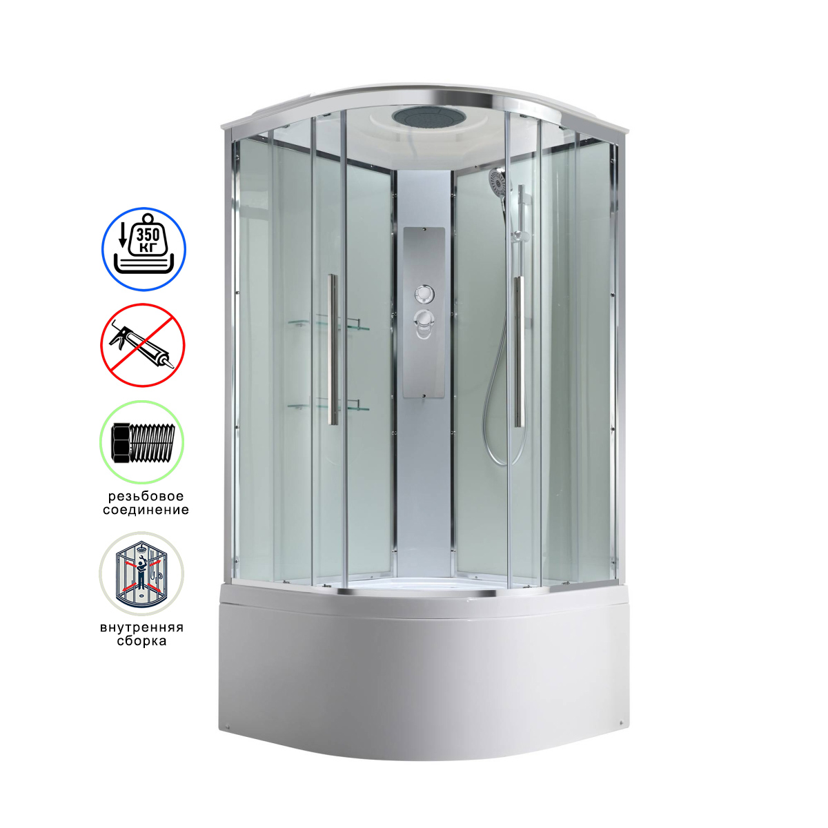 Стильная душевая кабина AvaCan сочетает в себе высокую функциональность, практичность и надежность. При изготовлении применяется безопасное закаленное стекло, надежно фиксируемое алюминиевым профилем. Профиль сделан из алюминия повышенной прочности. Сборка без силикона (увеличивает срок службы, защищает от протечек), внутренняя сборка (облегчает установку и ревизию; позволяет установить в ограниченном пространстве и обойтись без демонтажа других сантехнических приборов), смеситель резьбовой (без хомутов). Съемный экран поддона (позволяет осуществлять подключение и ревизию сифона).Двойные металлические ролики дверей (распределение нагрузки на два ролика, увеличивают срок службы). Душевая штанга(позволяет регулировать по высоте ручную лейку), ручная арома-лейка с витамином С (картридж в комплекте, есть возможность замены или удаления картриджа), полочки(из стекла, с ограничителем), сифон с гидрозатвором