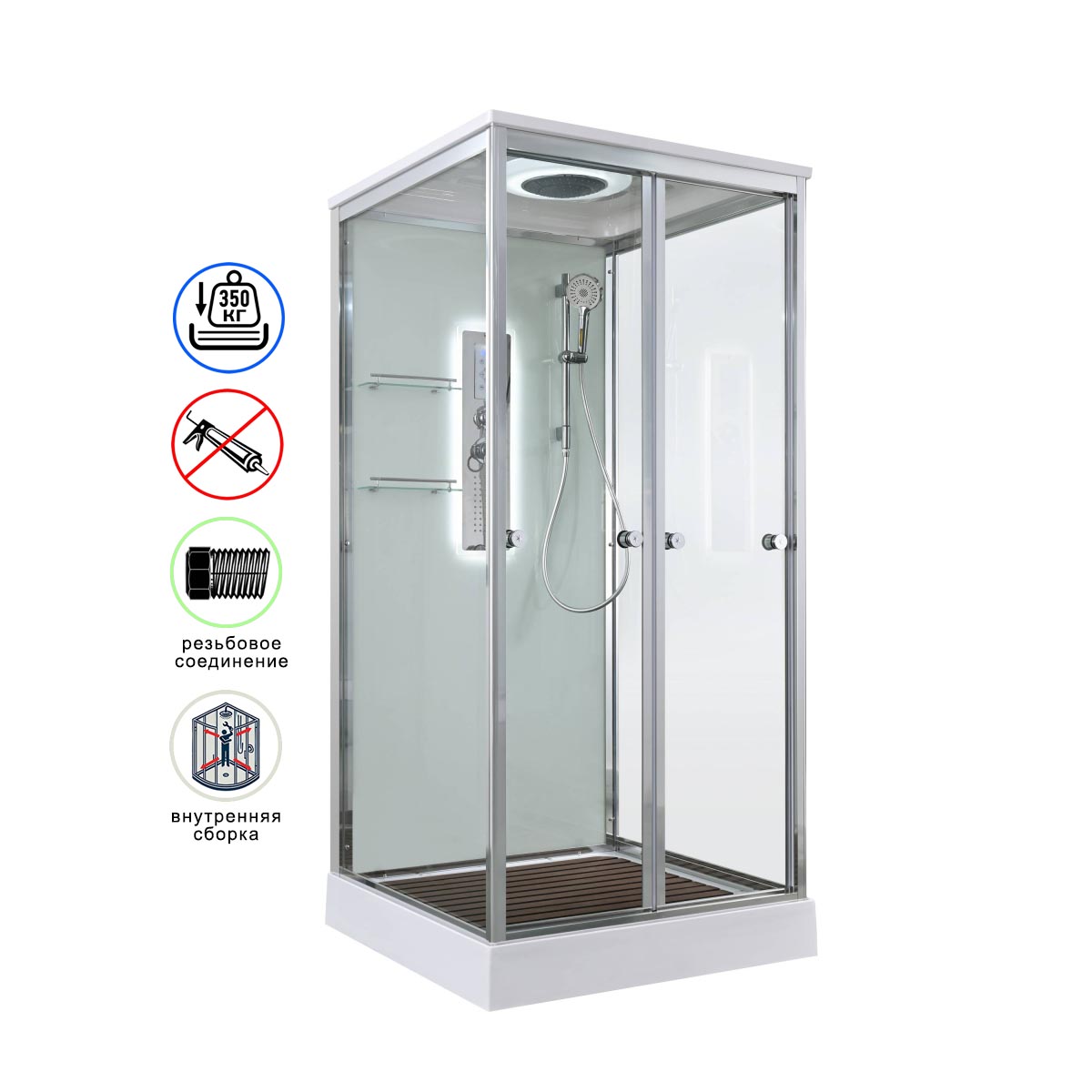 Душевая кабина Avacan V2090LED AVA 90x90 LED, стекла прозрачные, профиль хром