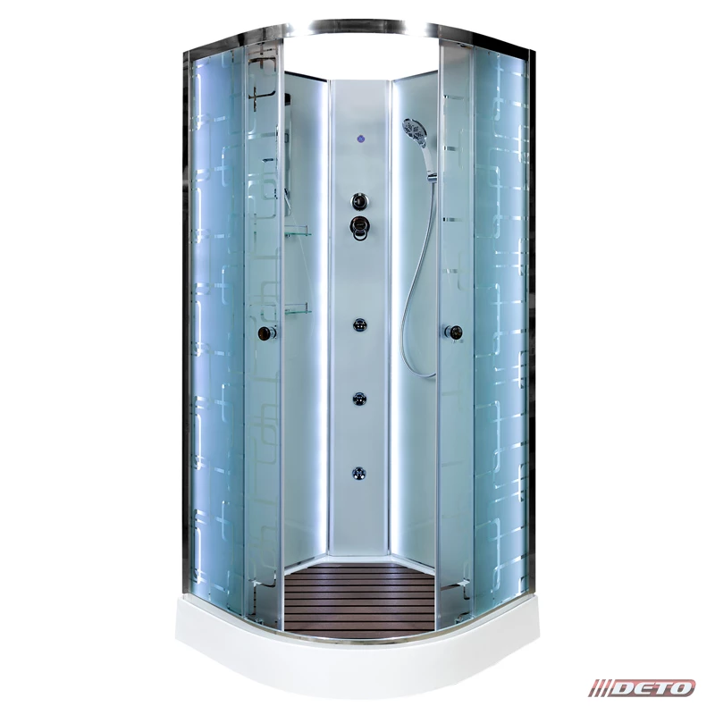 Душевая кабина deto EM1590 N LED 90x90 (без крыши с гидромассажем) стекла с рисунком, профиль хром