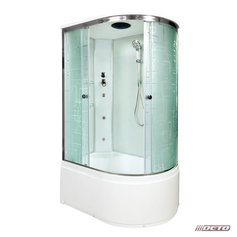 душевая кабина deto em4512 n led с гидромассажем r 120x80 (без крыши) стекла с рисунком, профиль хром