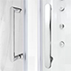 В душевых кабинах TEUER серии CRYSTAL установлены 3 форсунки для вертикального гидромассажа, сделаны из латуни с хромированным покрытием. Джеты форсунок сделаны из высококачественного силикона, это не позволяет скапливаться внутри них известковым отложениям, и чистятся одним прикосновением ладони. Благодаря своему покрытию форсунки смотрятся очень изящно, прекрасно вписываются в дизайн душевой кабины.