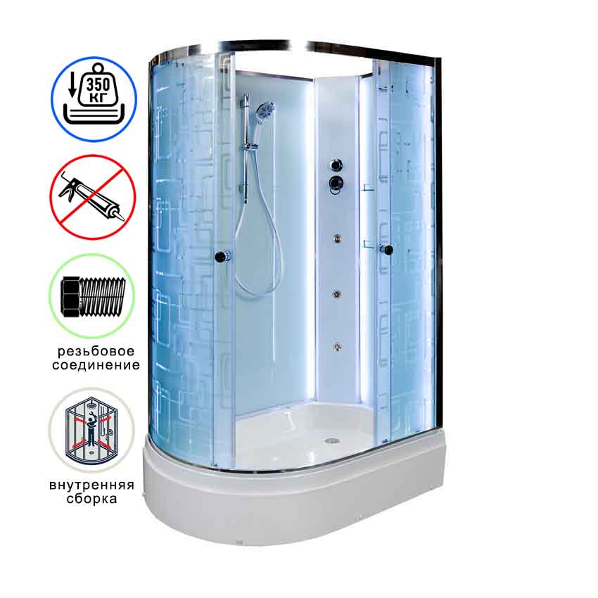 душевая кабина avacan em5012rled ava 120x90 led, правая, стекла с рисунком, профиль хром