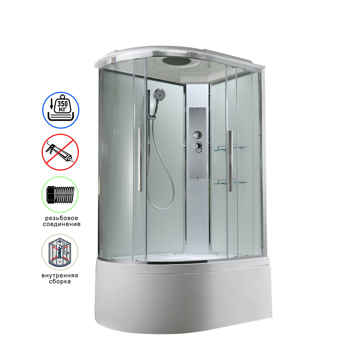 Абсолютная водонепроницаемость мест соединений конструктивных элементов не требует дополнительной герметизации. Кабина устанавливается даже непрофессионалом за 1 — 2 часа.