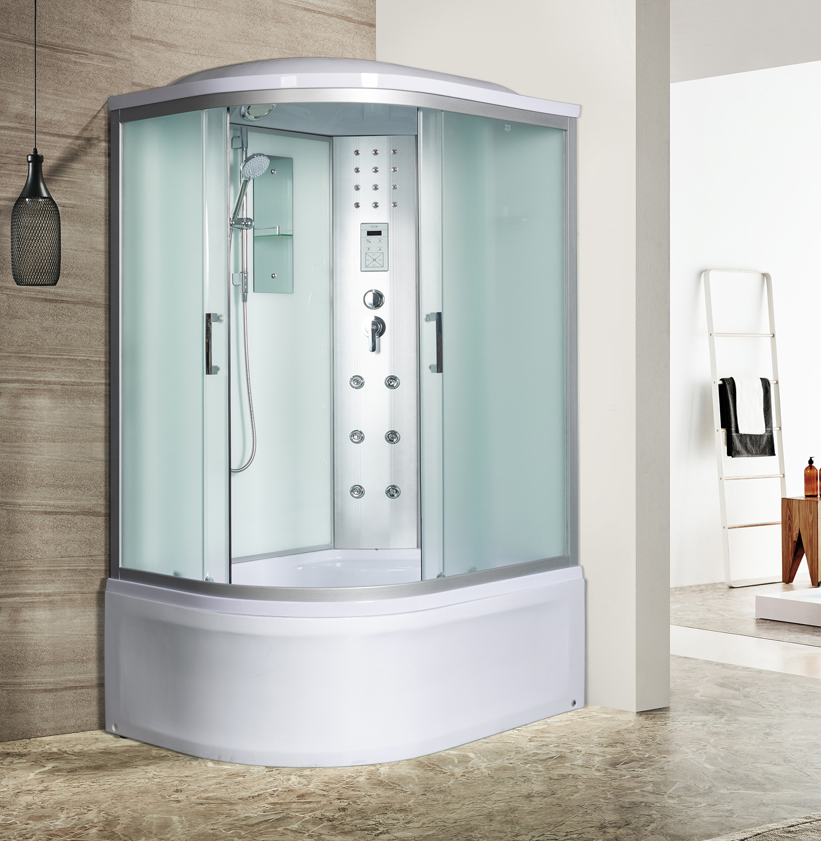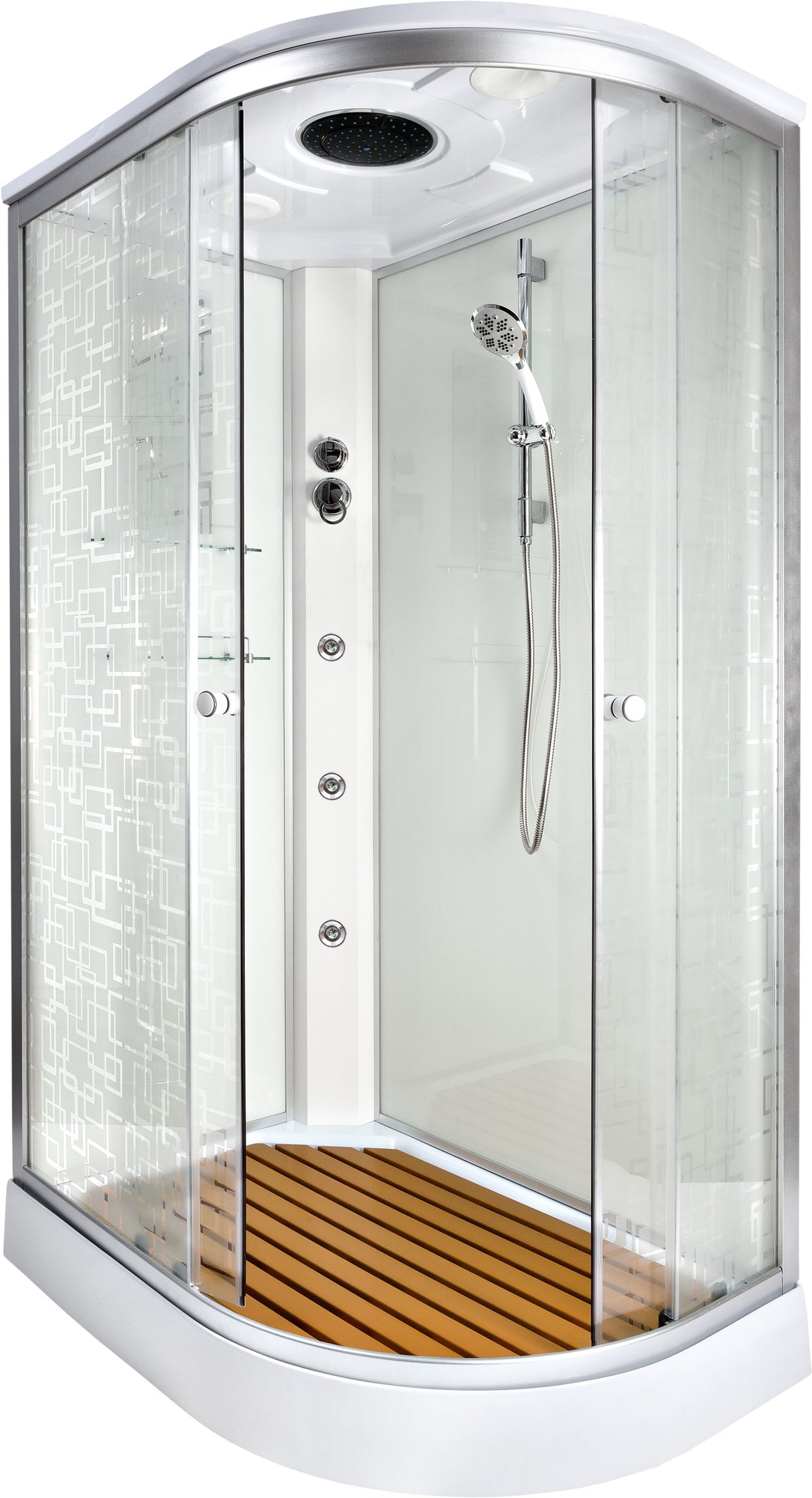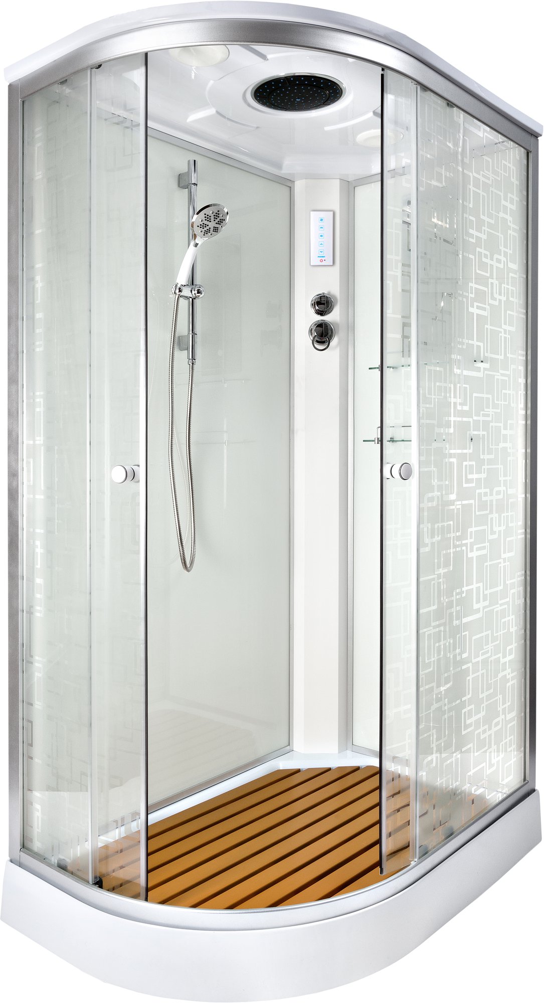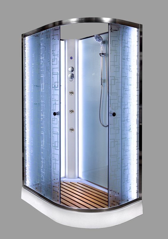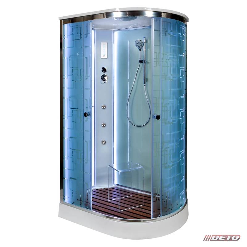 душевая кабина deto em1511 r 110x80 (с электрикой) стекла матовые, с рисунком, профиль хром, праваяКод: 117187
