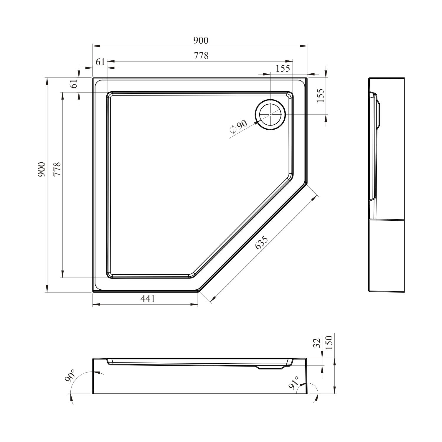 душевой поддон river/wemor 90x90x14 pКод: 43196