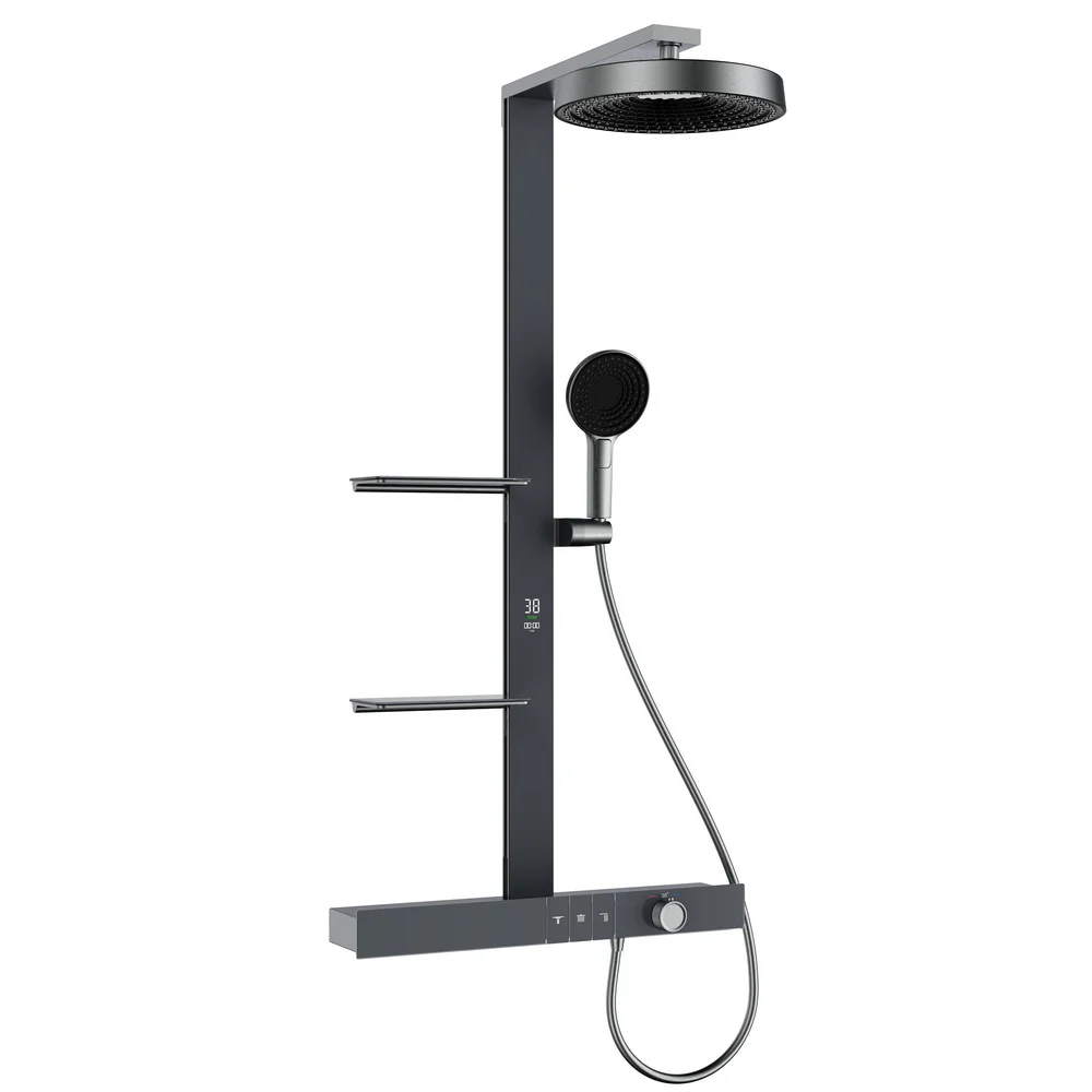 душевая система скрытого монтажа black&white gravity gh-9201-gm с термостатом, оружейная сталь