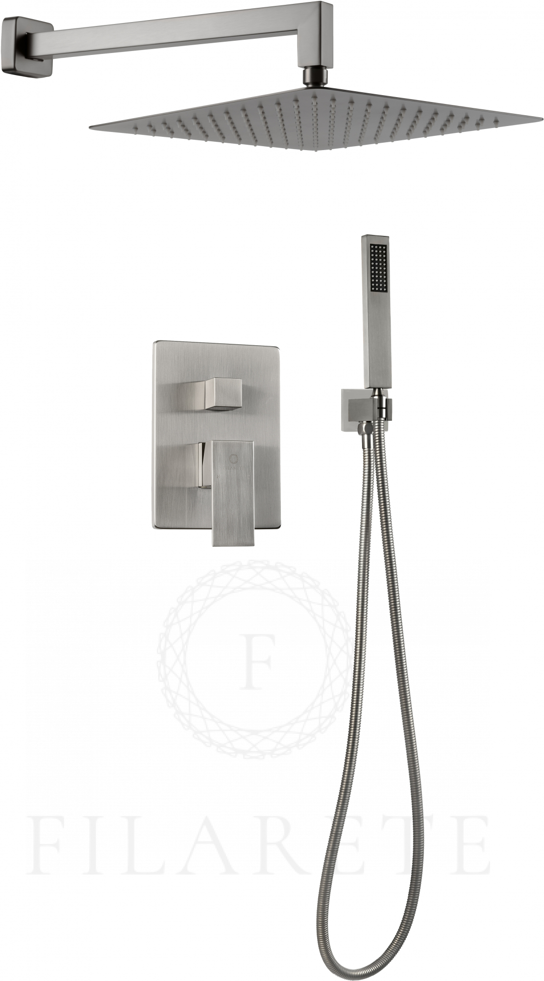 Душевая система скрытого монтажа Filarete Fing FL1043 — современное и стильное решение для ванной комнаты. Включает в себя встроенный однорычажный смеситель, верхний тропический душ с регулировкой наклона, ручную однорежимную лейку и ее держатель, а также душевой шланг длиной 150 см. Модель изготовлена из качественной латуни, которая обладает высоким уровнем прочности и износостойкости, а также не подвержена коррозии.