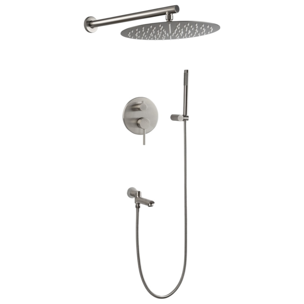 Душевая система скрытого монтажа Filarete Roun FL1020 — стильная модель, которая прекрасно впишется в современный интерьер ванной комнаты. Включает в себя: встроенный однорычажный смеситель, верхний тропический душ с регулировкой наклона, поворотный излив, ручную однорежимную лейку и ее держатель, а также душевой шланг длиной 150 см. Изготовлена из качественной латуни, которая обладает высоким уровнем прочности и износостойкости, обеспечивает долгий срок службы изделия, а также не подвержена коррозии.