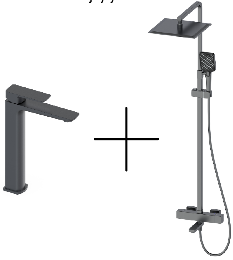 Душевая стойка со смесителем Oliveeka OL-739901+239003-BGM оружейная сталь