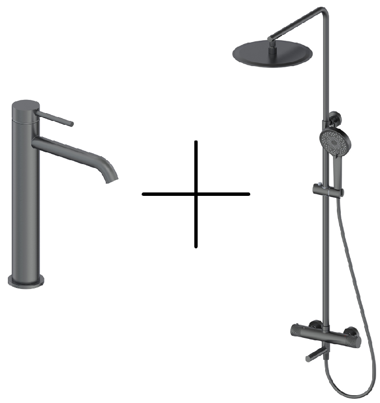 Душевая стойка со смесителем Oliveeka OL-739902+88239017-BGM оружейная сталь