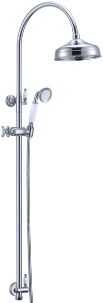 Хромовые душевые стойки Parly CK-S1803-B изготовленные из хромированной латуни, можно купить в Минске, заказав в нашем интернет-магазине . Душевые стойки Parly CK-S1803-B с цинковыми рукоятками, оснащены двумя лейками, одна для верхнего душа, вторая для ручного.