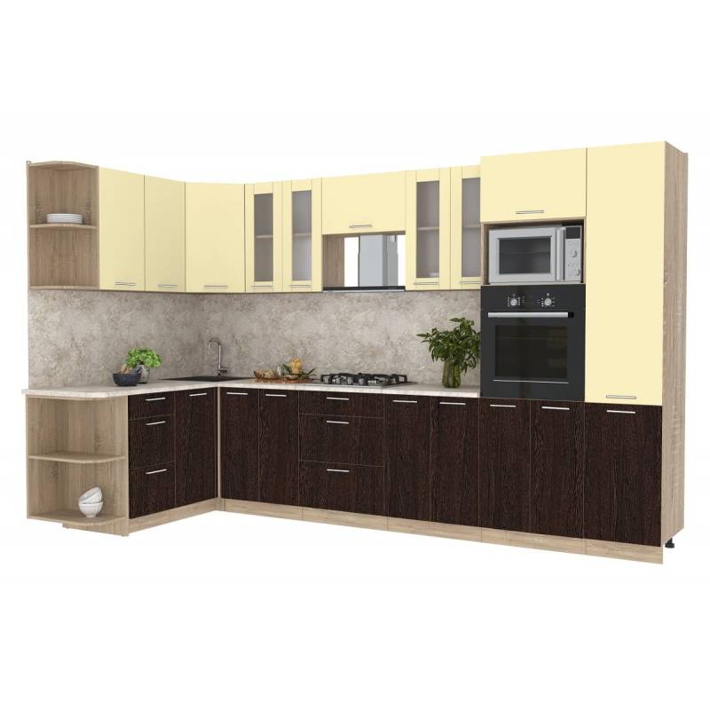 Цвета фасадов можно комбинировать по желанию. Предусмотрены отдельные цвета на верхние и нижние шкафчики.