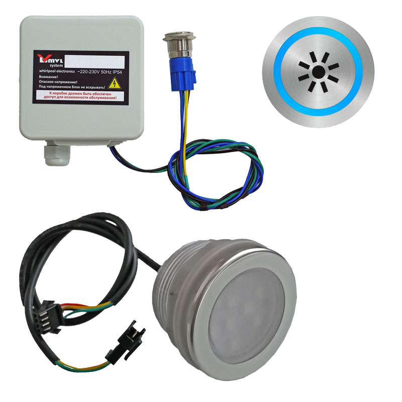 - мощный контроллер RGB (максимально 5 ламп) c функцией паузы и таймером автоотключения (60 минут), скрытая сенсорная кнопка (или кнопка с индикацией по требованию клиента)