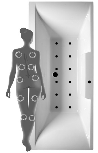 Зоны воздействия гидромассажной системы: