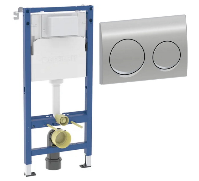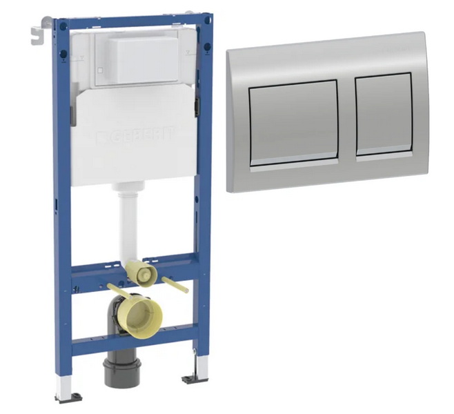 комплект инсталляции geberit alpha 458.233.00.2 с клавишей смыва alpha 20 хром и унитазом teymi t40102Код: 201487