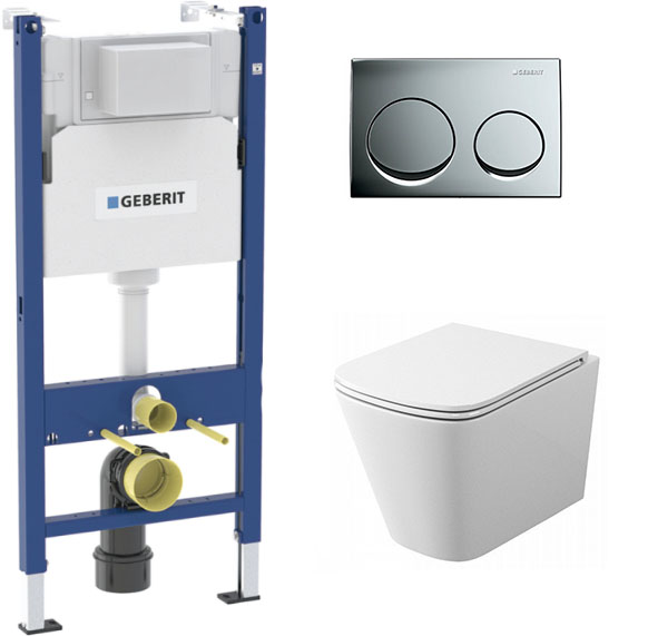 комплект инсталляции geberit duofix 458.124.21.5 с клавишей смыва хром и унитазом teymi t40302Код: 201502