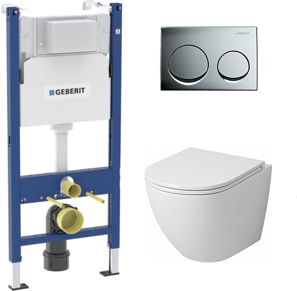 комплект инсталляции geberit duofix 458.124.21.5 с кнопкой смыва хром и унитазом teymi hanna pro t40901Код: 173068