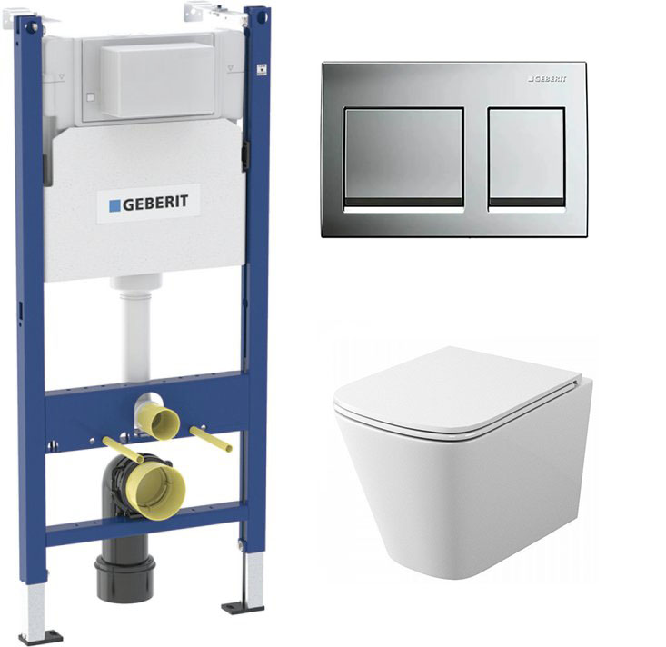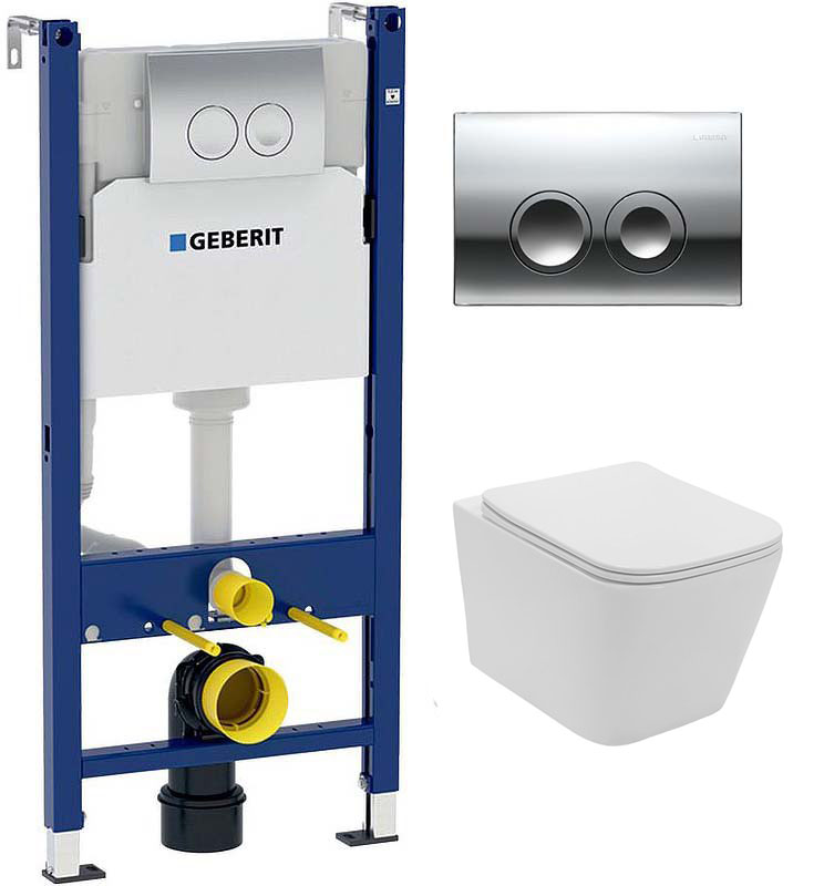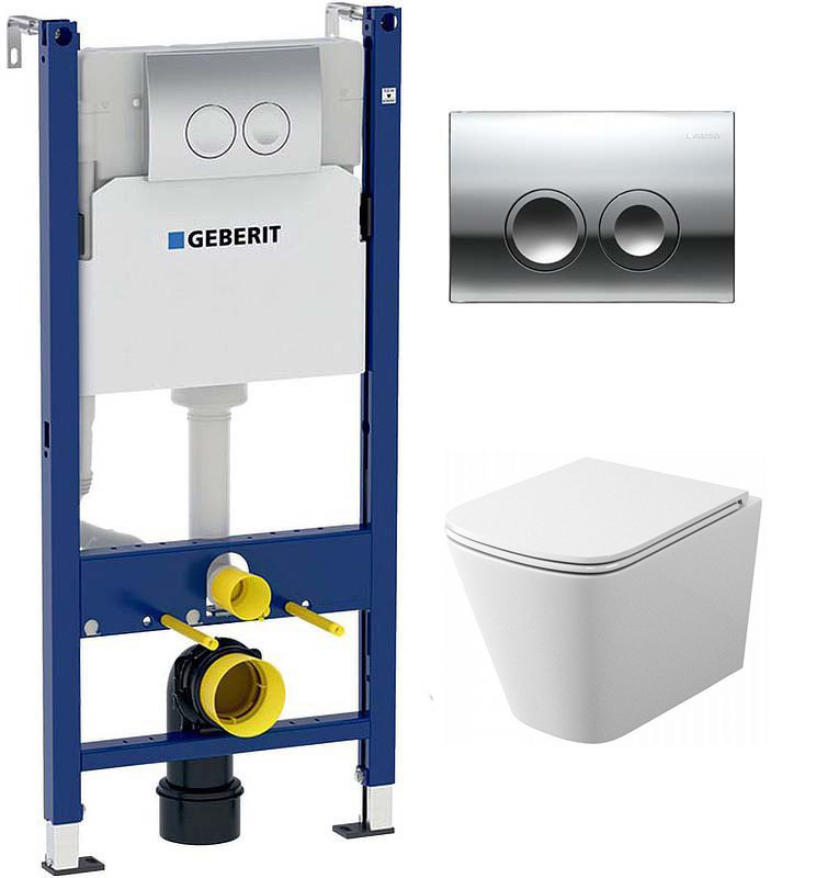 комплект инсталляции geberit alpha 458.233.00.2 с клавишей смыва alpha 20 хром и унитазом teymi t40302Код: 201499