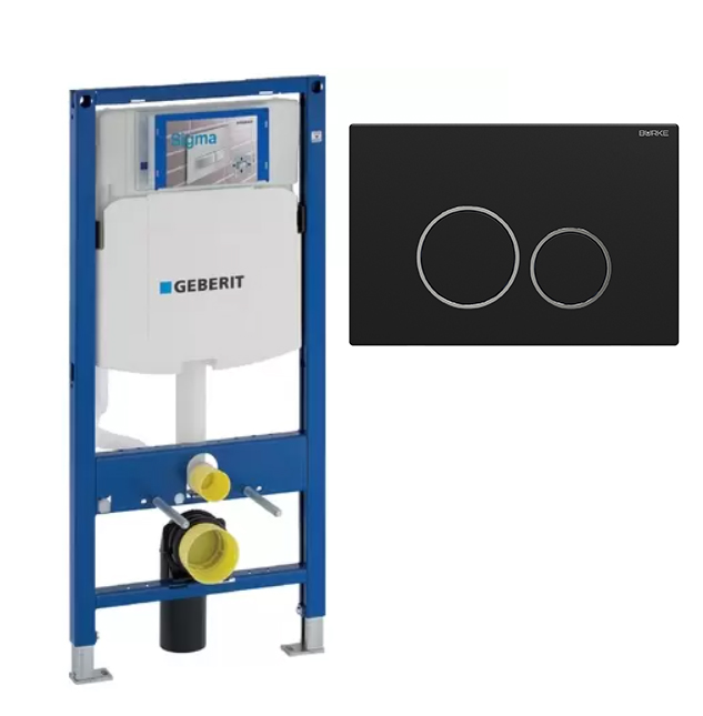 Инсталляция для подвесного унитаза Geberit Sigma 12 с клавишей смыва Burke Type 05 матовый черный/глянцевый хром