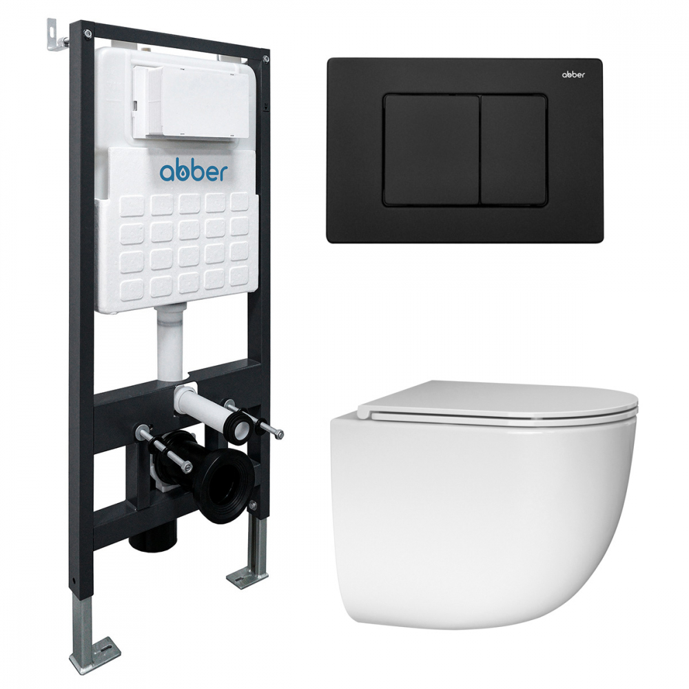 Комплект инсталляции Abber 3 в 1 AC0105 с клавишей смыва AC0120MB черный матовый и унитазом Bequem AC1132TC