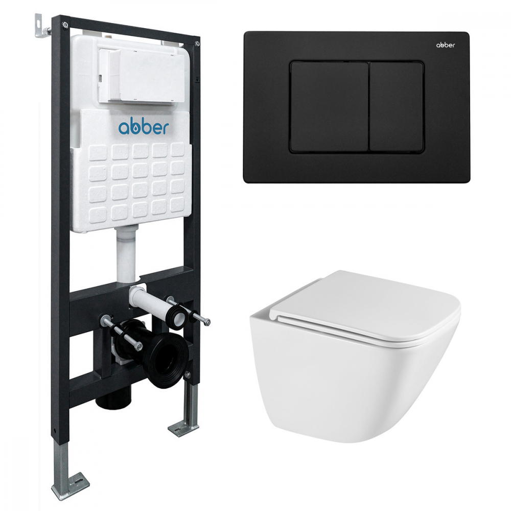 Комплект инсталляции Abber 3 в 1 AC0105 с клавишей смыва AC0120MB черный матовый и унитазом Rechteck AC1220TC