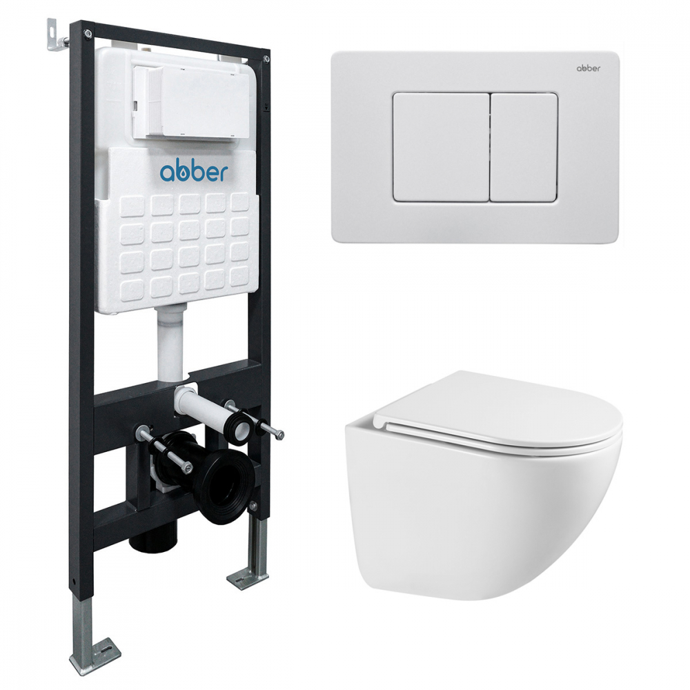 Комплект инсталляции Abber 3 в 1 AC0105 с клавишей смыва AC0120MW белый матовый и унитазом Bequem AC1131TC