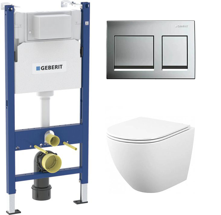 Комплект инсталляции Geberit Alpha 458.233.00.2 с клавишей смыва Alpha 35 хром и унитазом Teymi T40102