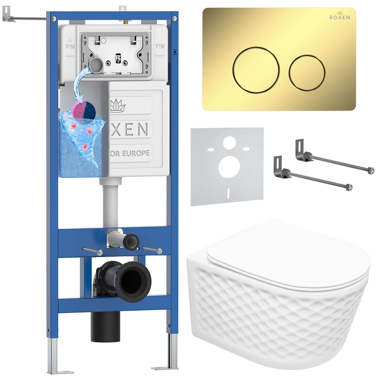 комплект инсталляции roxen 6 в 1 stounfix dual fresh 868476 клавиша золото