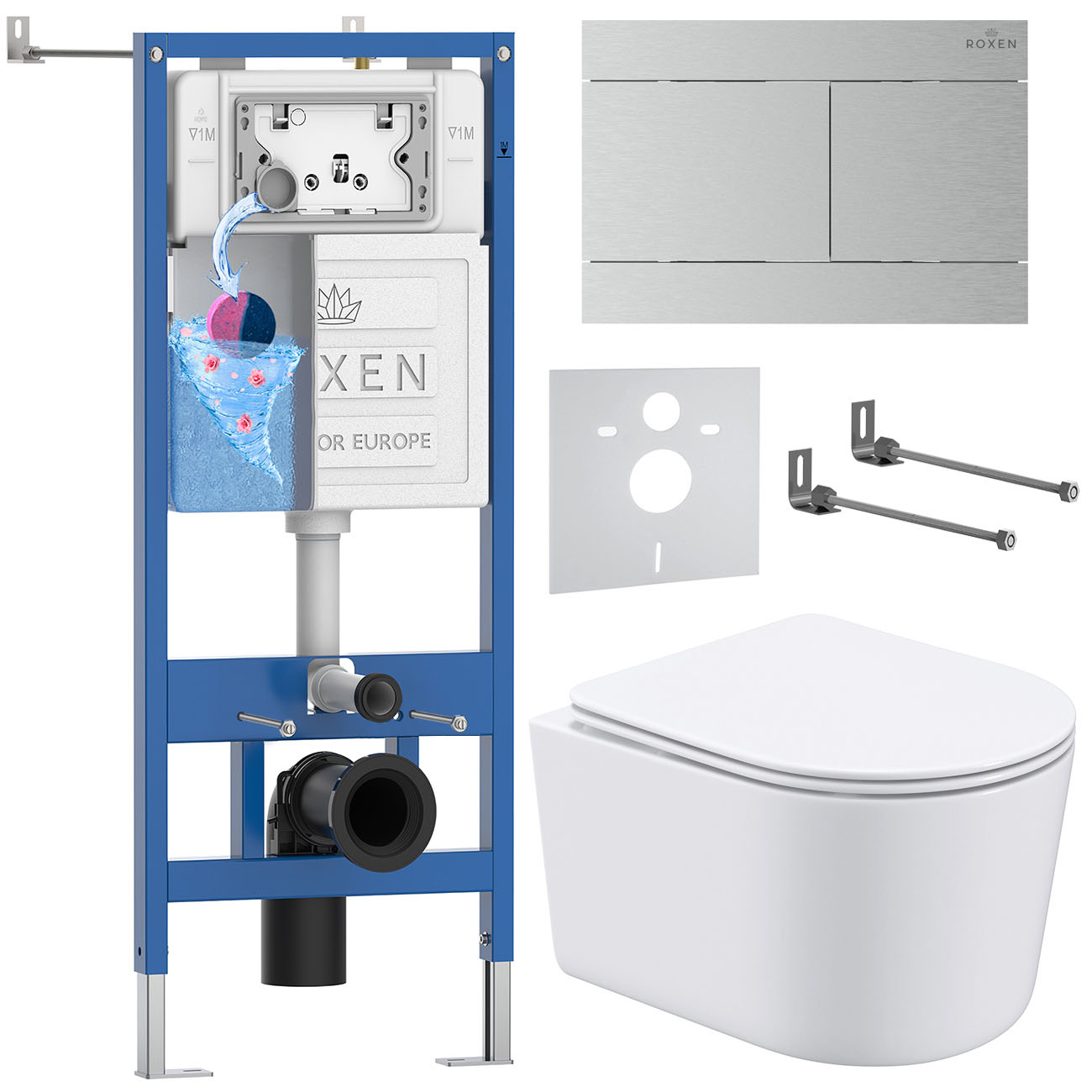 комплект инсталляции roxen 6 в 1 stounfix dual fresh 868579 клавиша сатин