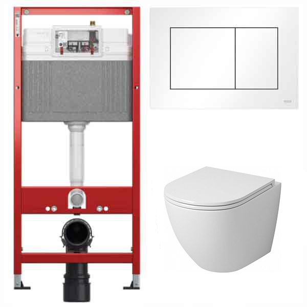 Комплект инсталляции Tece 9400413 с клавишей смыва белой и унитазом Grossman GR-4455SQ