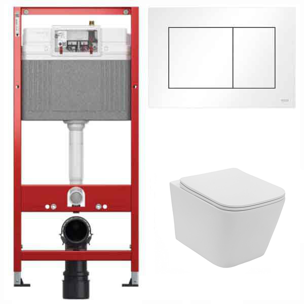 Комплект инсталляции Tece 9400413 с клавишей смыва белой и унитазом Lekvo T-202