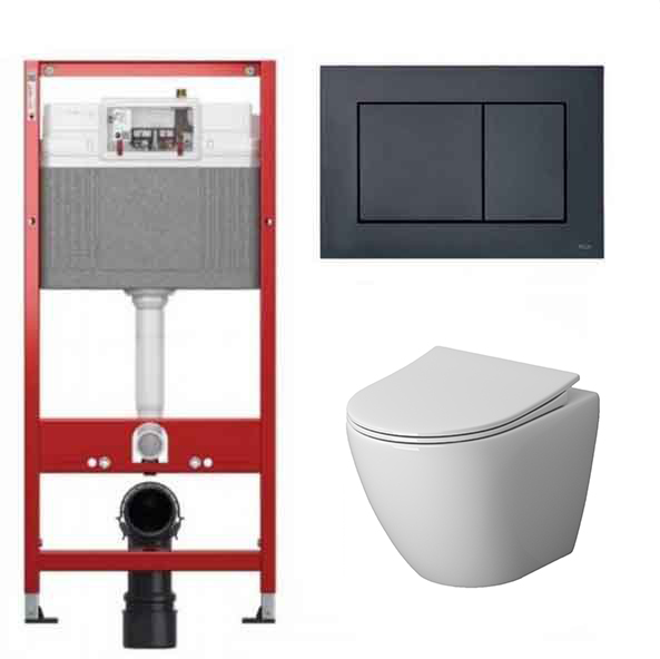Комплект инсталляции Tece 9400414 с черной клавишей смыва и унитазом Niagara NG-9301