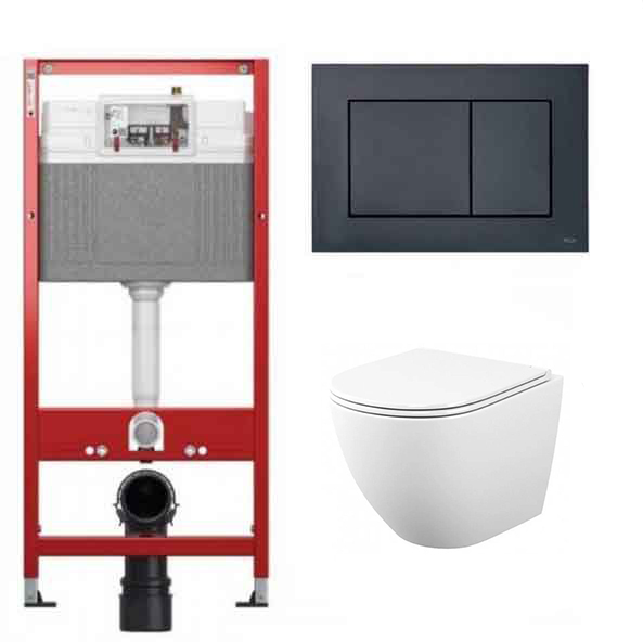 Комплект инсталляции Tece 9400414 с черной клавишей смыва и унитазом Teymi T40102