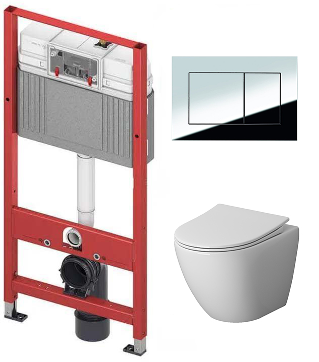 Комплект инсталляции TECE base 2.0 4в1 9400412 с клавишей смыва глянцевый хром и унитазом Niagara NG-9301
