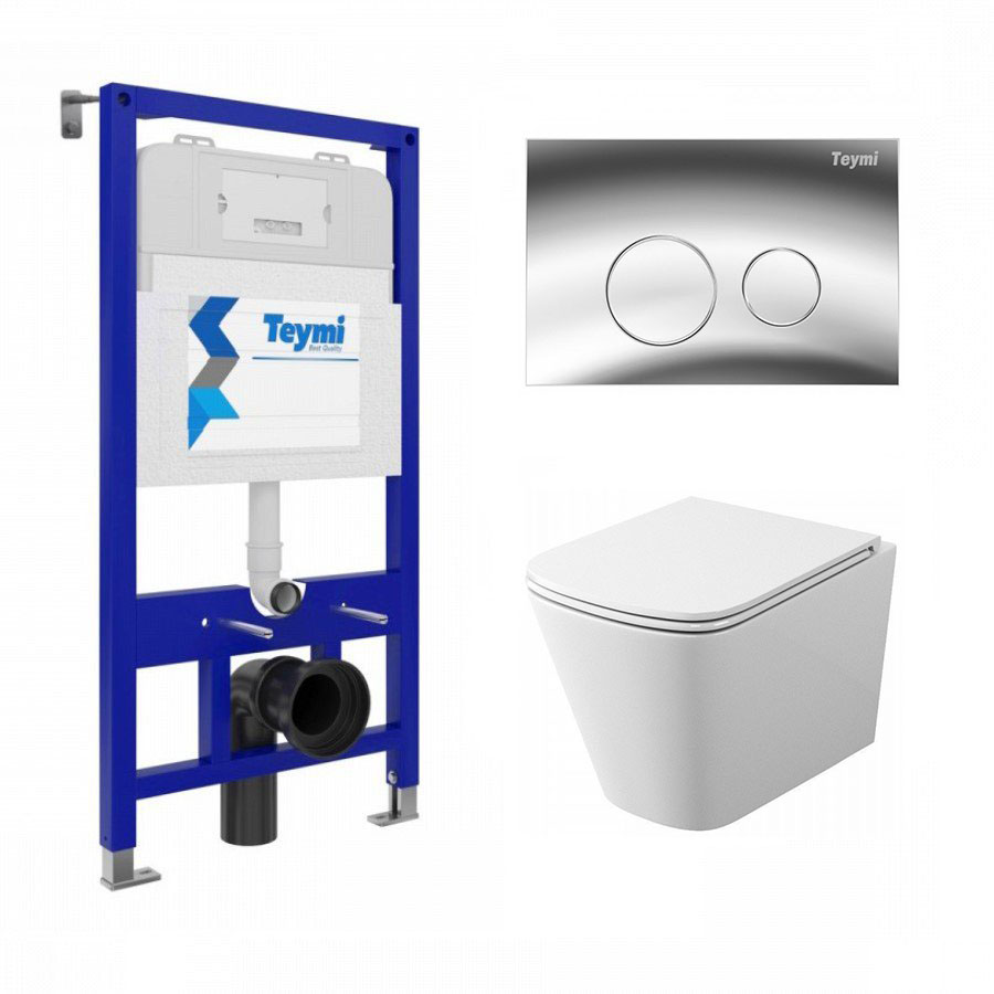 Комплект инсталляции Teymi Aina 52 T70011 с клавишей смыва T70102CH и унитазом Teymi T40302