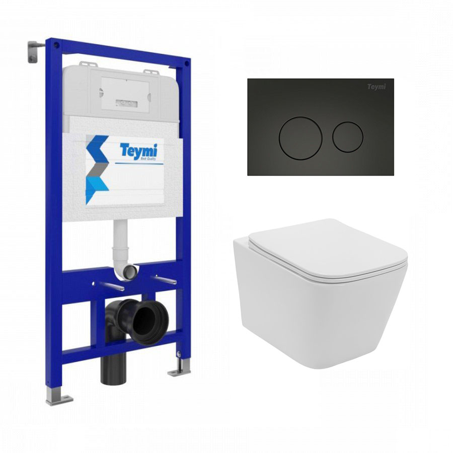 Комплект инсталляции Teymi Aina 52 T70011 с клавишей смыва T70103BM и унитазом Lekvo T-202